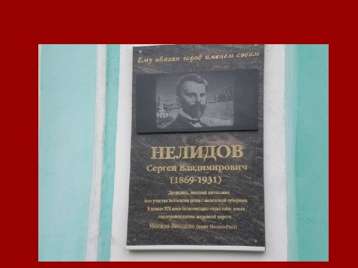 Более столетия станция, позже поселок, а с 1949 года и город на реке Меже носит имя - Сергея Владимировича Нелидова, который безвозмездно передал земли своего владения под строительство железной дороги.