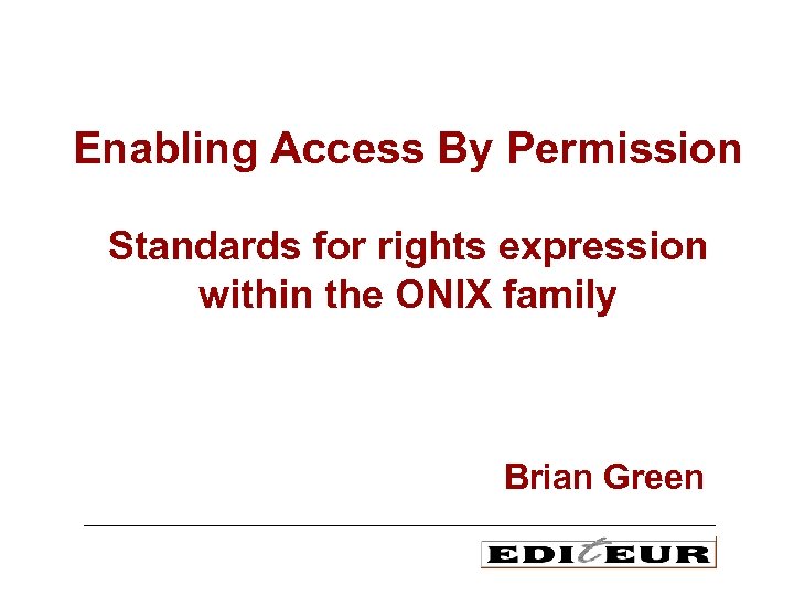 Enabling Access By Permission Standards for rights expression within the ONIX family Brian Green