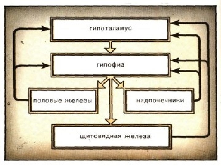 Гипоталамус - это орган головного мозга, который, наподобие диспетчерской, дает распоряжения по выработке и распределению гормонов в нужном количестве и в нужное время. Щитовидная железа, околощитовидные железы - щитовидная железа, расположенная в передней части шеи, секретирует три гормона. К ней примыкают четыре небольшие околощитовидные железы, участвующие в обмене кальция. Поджелудочная железа - этот орган является одновременно экзокринным и эндокринным. Как эндокринный, он вырабатывает два гормона - инсулин и глюкагон, регулирующие обмен углеводов. Гипофиз - железа, расположенная в основании черепа, выделяющая большое количество трофических гормонов - тех, которые стимулируют секрецию других эндокринных желез. Надпочечники - представляют собой две небольшие железы, расположенные по одной над каждой почкой и состоящие из двух самостоятельных частей - коры и мозгового вещества. Половые железы - половые железы (яичники у женщин и яички у мужчин) вырабатывают половые клетки и другие основные гормоны, участвующие в репродуктивной функции.