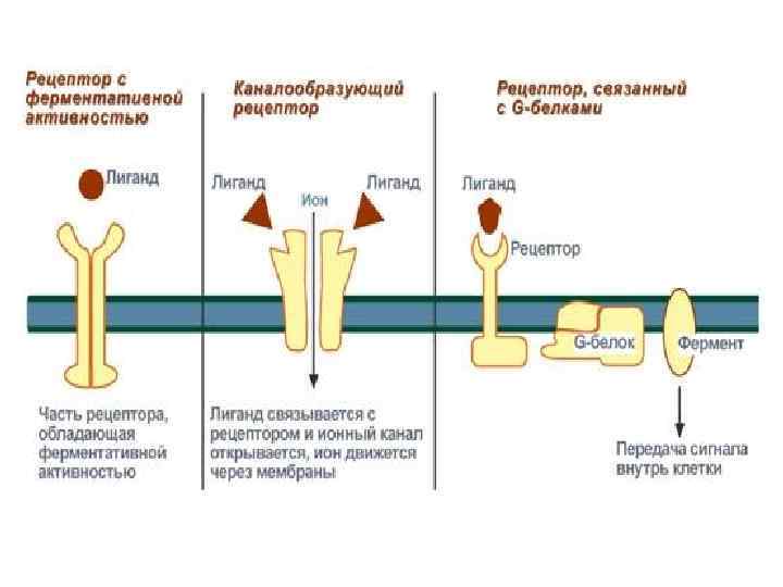 Мембранные рецепторы Метаботропные Ферментные системы Ионотропные Хемозависимые ионные каналы