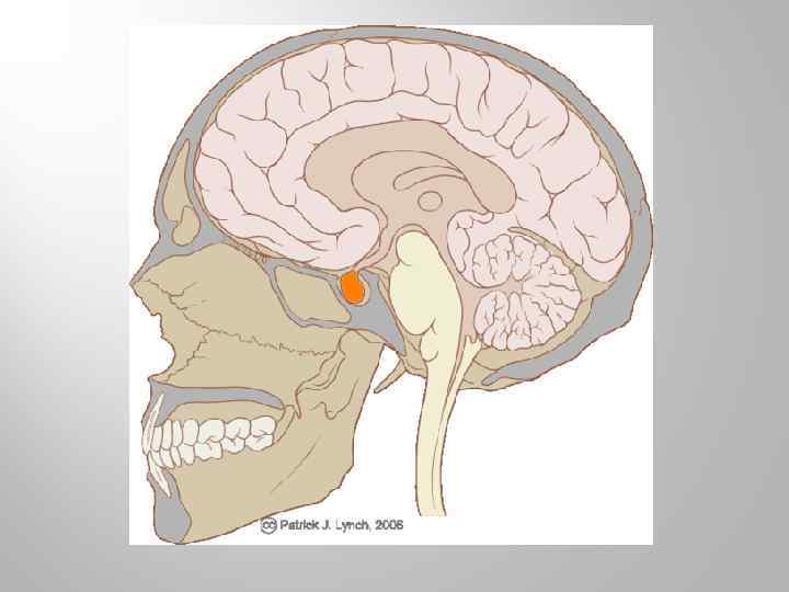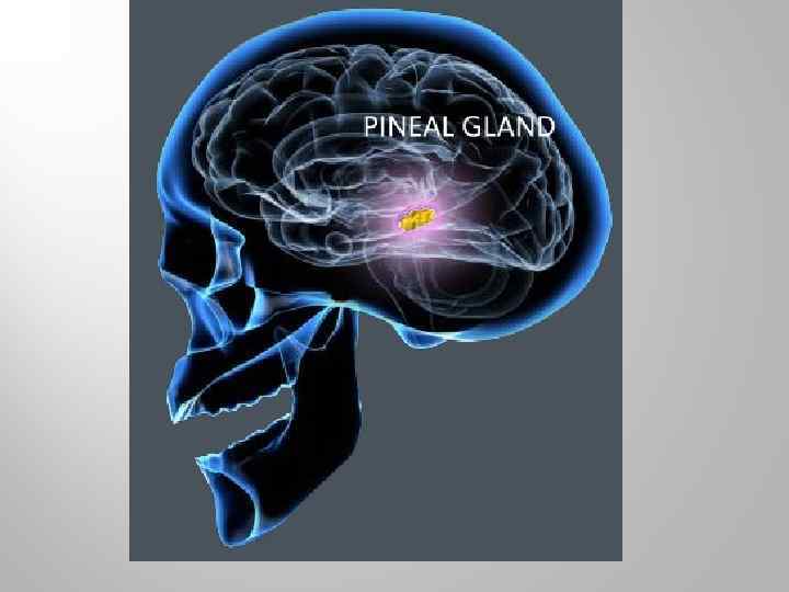 Эпифиз или шишковидное тело - небольшое овальное образование, относящееся к промежуточному мозгу. Находится в полости черепа над пластинкой крыши среднего мозга, в борозде между двумя ее верхними холмиками. До ХХ века считали вместилищем души. Основной гормон эпифиза - мелатонин регулирует пигментный обмен, вызывает осветление кожи и тормозит половое созревание. Вырабатывается в темноте. Определяет суточный биологический цикл, включающий периодичность сна и колебания температуры тела.
