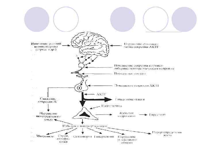 Характеристика форм Выраженная форма – l Ожирение III степени l Артериальная гипертензия до 160/110 мм. рт. ст. l Стероидная миокардиодистрофия l Диабет или НТГ l Значительный остеопороз l 17 -ОКС в плазме 17, 1± 2 мкг/100 мл. l Кортизол плазмы 26, 5± 1 мкг/100 мл. l АКТГ 183± 80 пг/мл. l Экскреция 17 -ОКС с мочой 11, 9± 1 мг/сут.
