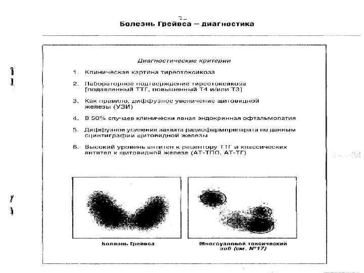 Необходимый минимум обследований при направлении в бюро МСЭ. l Гормоны щитовидной железы, ТТГ и антитела к тиреоглобулину, l СБИ, сахар крови, холестерин, триглицериды, общий белок и фракции, l исследование захвата 131 J и сканирование щитовидной железы, l консультации кардиолога, окулиста, невролога, психиатра при поражении соответствующих органов и систем.