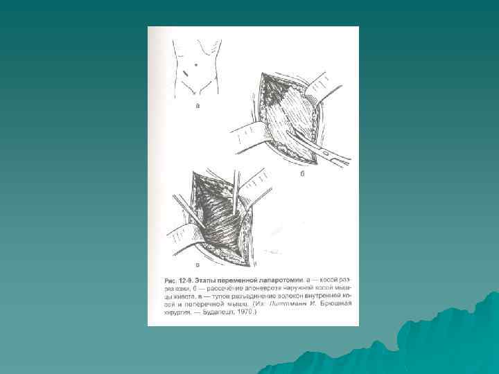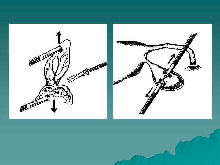 ОСНОВНЫЕ ЭТАПЫ ЛАПАРОСКОПИЧЕСКОЙ ОПЕРАЦИИ u I. Оперативный доступ (1. Наложение пневмоперитонеума (карбоксиперитонеума), введение первого троакара и ревизия брюшной полости; 2. Экспозиция). u II. Оперативный прием (3. Операция). u III. Выход из операции (4. Окончание операции).