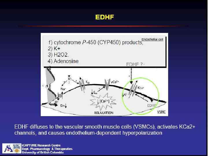 Эндотелий-зависимые гиперполяризующие факторы (EDHF) Натрийуретиче ский пептид Cytochrome P 450 эпоксиэйконазоиды Сегмент a. in. carotid морской свинки Sandow SL et al, Trend Pharm. Sci. 28: 61 -67, 2007