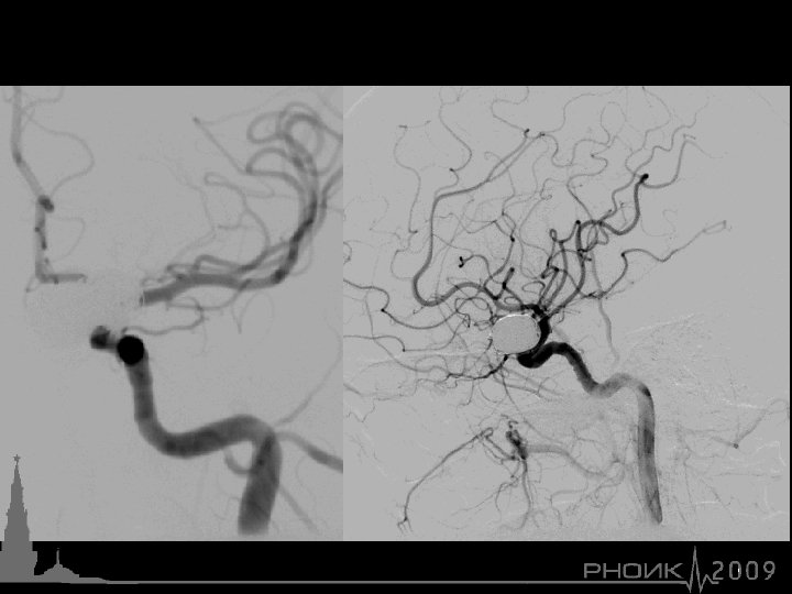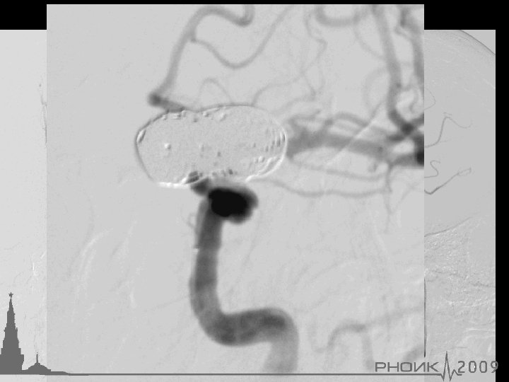 Осложнения эмболизации аневризм: ИШЕМИЧЕСКИЕ тромбоэмболия 10 ГЕМОРРАГИЧЕСКИЕ 9 ТЕХНИЧЕСКИЕ 2 (формирование тромба на поверхности витков спирали, стента, сужение несущей артерии витками спиралей, тромбоэмболия из направляющего катетера) 16. 4% ЛЕТАЛЬНОСТЬ 22 (17. 2%)