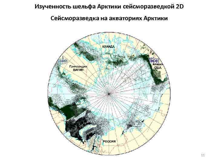 Изученность шельфа Арктики сейсморазведкой 2 D Сейсморазведка на акваториях Арктики 11