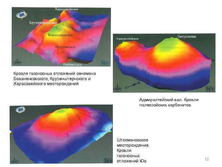 Кровля газоносных отложений сеномана Бованенковского, Крузенштернского и Харасавейского месторождений Адмиралтейский вал. Кровля палеозойских карбонатов Штокмановское месторождение. Кровля газоносных отложений Юо 12