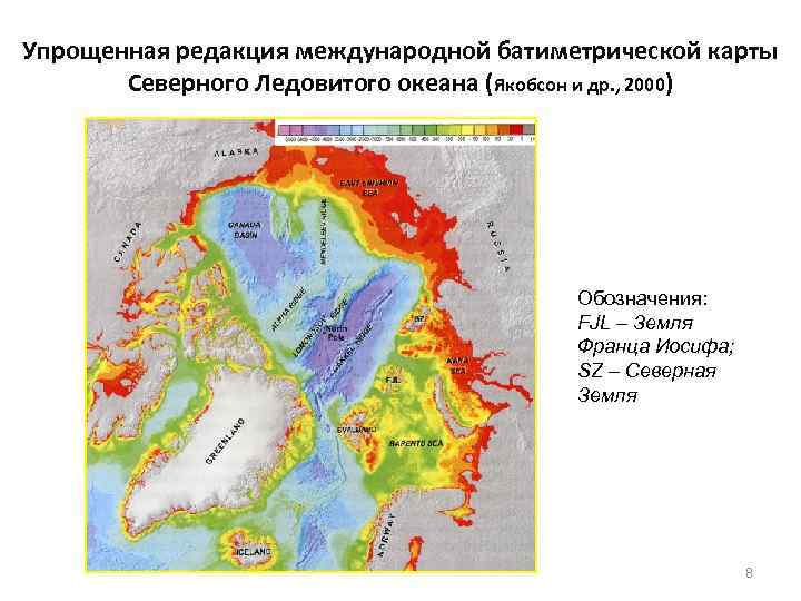 Упрощенная редакция международной батиметрической карты Северного Ледовитого океана (Якобсон и др. , 2000) Обозначения: FJL – Земля Франца Иосифа; SZ – Северная Земля 8