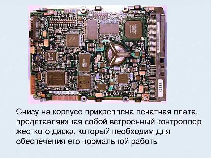 Снизу на корпусе прикреплена печатная плата, представляющая собой встроенный контроллер жесткого диска, который необходим для обеспечения его нормальной работы