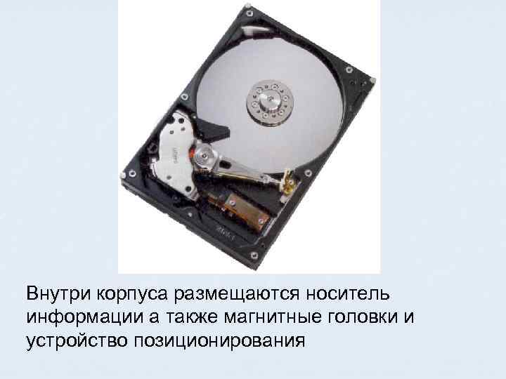 Внутри корпуса размещаются носитель информации а также магнитные головки и устройство позиционирования