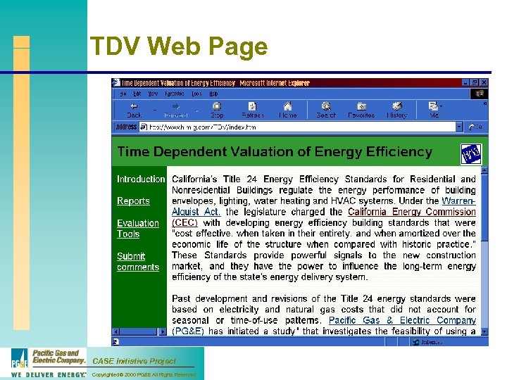 TDV Web Page CASE Initiative Project Copyrighted © 2000 PG&E All Rights Reserved