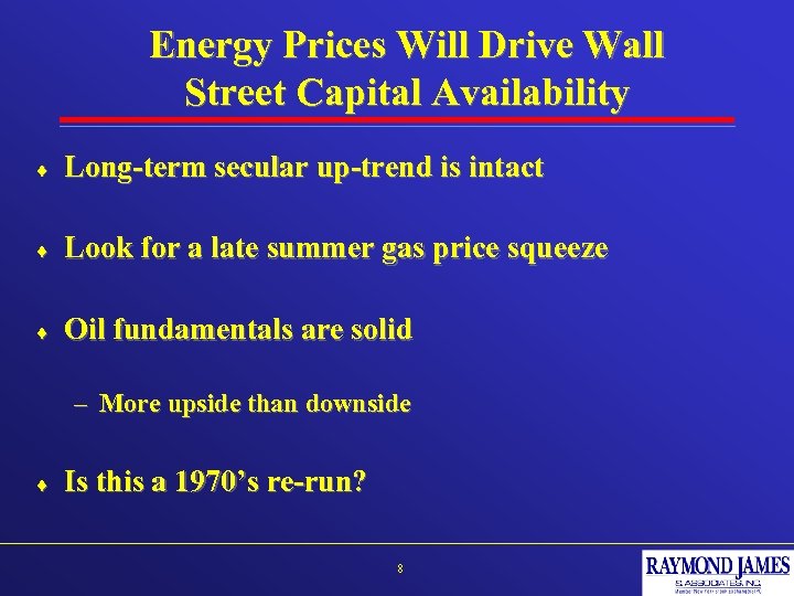 Energy Capital: Will Wall Street Be There For Energy Financings Next Year? Raymond James Energy Group Marshall Adkins Raymond James Oilservice Group (800) 945 -6275 June 2004 Marshall. Adkins@Raymond. James. com