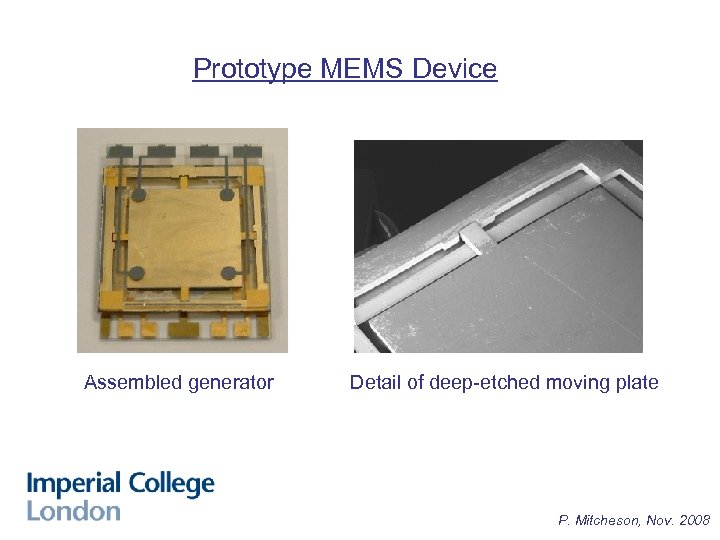 Prototype MEMS Device Assembled generator Detail of deep-etched moving plate P. Mitcheson, Nov. 2008