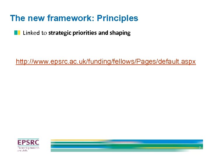 The new framework: Principles Linked to strategic priorities and shaping http: //www. epsrc. ac. uk/funding/fellows/Pages/default. aspx 7