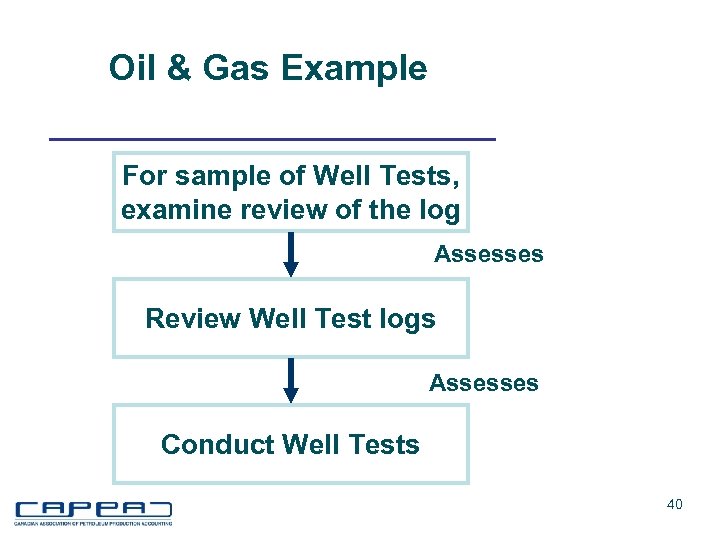Oil & Gas Example For sample of Well Tests, examine review of the log Assesses Review Well Test logs Assesses Conduct Well Tests 40