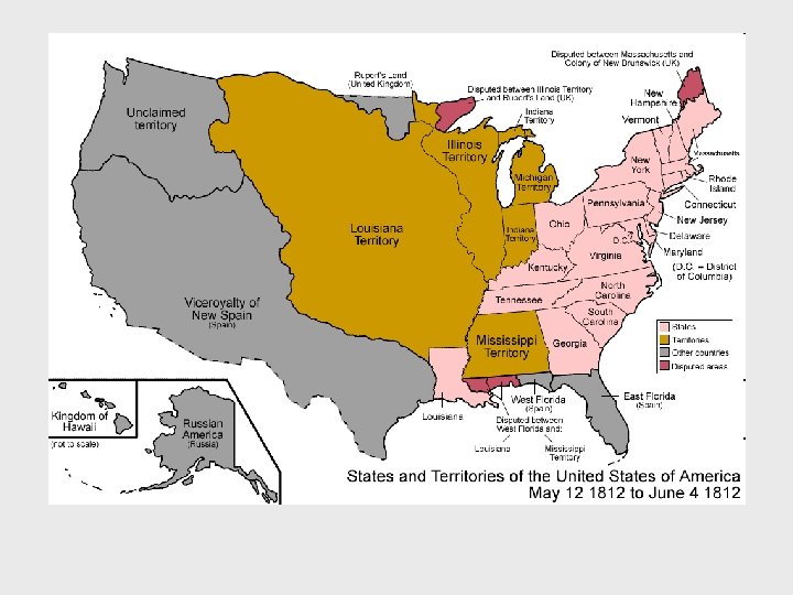EIGHT BASIC PREMISES In 1812, most Americans believed that: 5. The identification of most Americans remains with their separate states. Any concerted effort by the federal government is viewed with grave suspicion, and it is very difficult to get the state governments to support a federal military effort. 6. There is still no sense of a loyal opposition within the party system that is evolving in the United States. Accusations of treason, malice, corruption, and bad faith dominate political exchange.