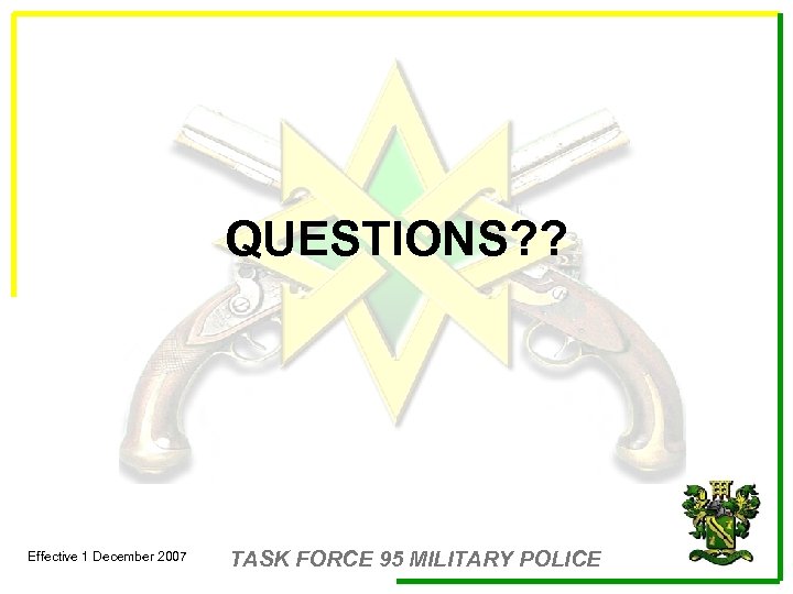 QUESTIONS? ? Effective 1 December 2007 TASK FORCE 95 MILITARY POLICE