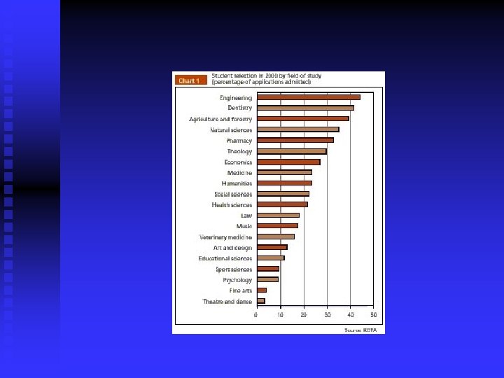 4. A high drop-out rate among students, standing at an average of around 40% in the Union. The «education for everybody» approach in the HE has resulted in huge expansion of the student population. In most Member States a successful secondary school career gives automatic right of access to university studies without no additional selection. This right is considered as an essential element of democracy to guarantee equality for all citizens (age, gender, minorities). In certain Member States, the universities themselves apply selection systems, in particular subject areas (particularly medicine and veterinary sceince) sometimes apply additional selection criteria.