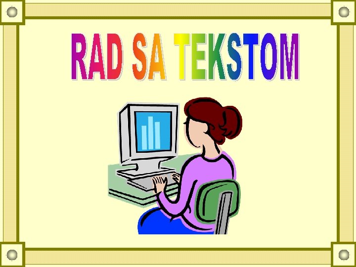 PRELAZAK U NOVI RED: Automatski - kucanjem teksta program sam prelazi u novi red kada stigne do kraja postojećeg. "Nasilan" prelazak u novi red - Enter tasterom, ali pre toga treba da se nalazite uspravna linija koja treperi - kursor) na kraiu prethodnog reda!