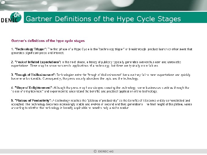 Gartner Definitions of the Hype Cycle Stages © DENIC e. G