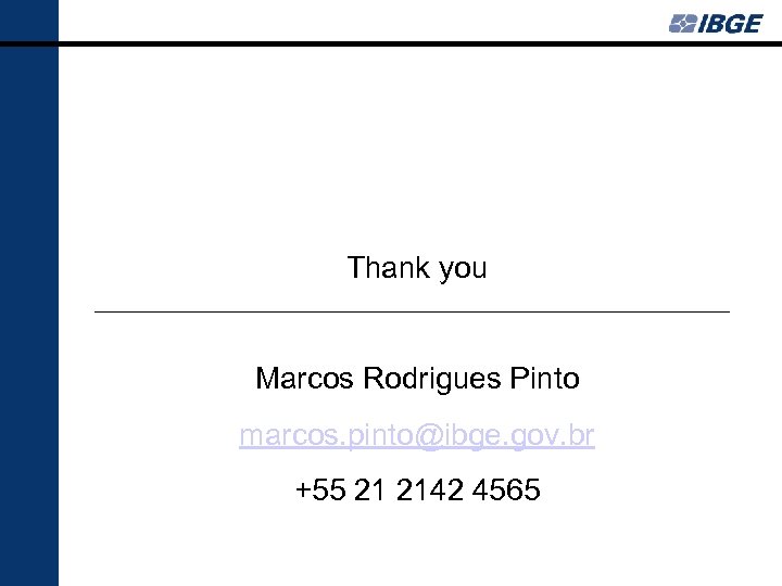 Thank you Marcos Rodrigues Pinto marcos. pinto@ibge. gov. br +55 21 2142 4565
