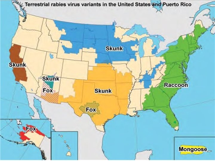 Species of rabid skunks n From 1985 through 2007 n 68. 56% of confirmed rabies positive skunks were speciated upon receipt at lab n n Of these 99. 48% were identified as striped skunks 0. 37% were identified as hog-nosed skunks 0. 12% were identified as spotted skunks 0. 02% was identified as a hooded skunk.