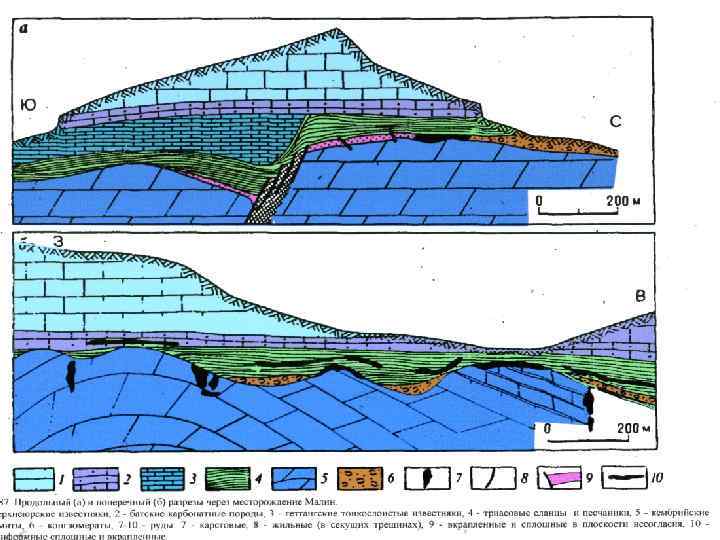 Роль динамометаморфизма • золоторудные объекты (например, месторождения Карлин в США и Бакырчик в Казахстане), алмазов (Кумдыкольское в Казахстане) и камнесамоцветного сырья (нефрита, чароита, лазурита и др. ). Характерны: • 1. Локализация месторождений и рудных полей в крупных зонах смятия и надвигов, протягивающихся на десятки километров; локализация рудоносных зон в наиболее деформированных участках разломов; • 2. Присутствие в рудных районах мощных сложно-смятых осадочных толщ и метаморфических сланцев, содержащих черносланцевые углеродистые формации; • 3. Сложная пластово-линзовидная форма рудных тел, границы которых определяются исключительно по данным опробования; • 4. Невыраженность околорудных метасоматических изменений.
