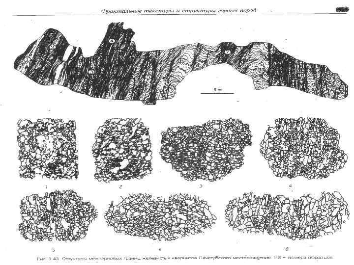 • Фрактал продолжается и на локальном уровне. Все 12 линзовидных м-ний имеют симметричнозональное строение. При расчленении пачки железорудного тела на более мелкие тела исходный порядок всегда сохраняеся • Такая последовательность не может быть объяснена ни литологическими, ни стратиграфическими причинами. Она должна быть понята единственно как следствие когерентной самоорганизации изначально однородной толщи под действием эндогенного энергопотока.