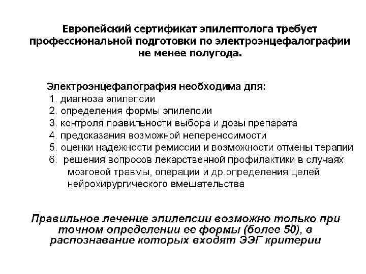 Рутинная интериктальная ЭЭГ является одним из наиболее часто злоупотребляемых методов исследования в клинической медицине и без сомнения ответственна за великие человеческие страдания. (Chadwick D. Diagnosis of Epilepsy)