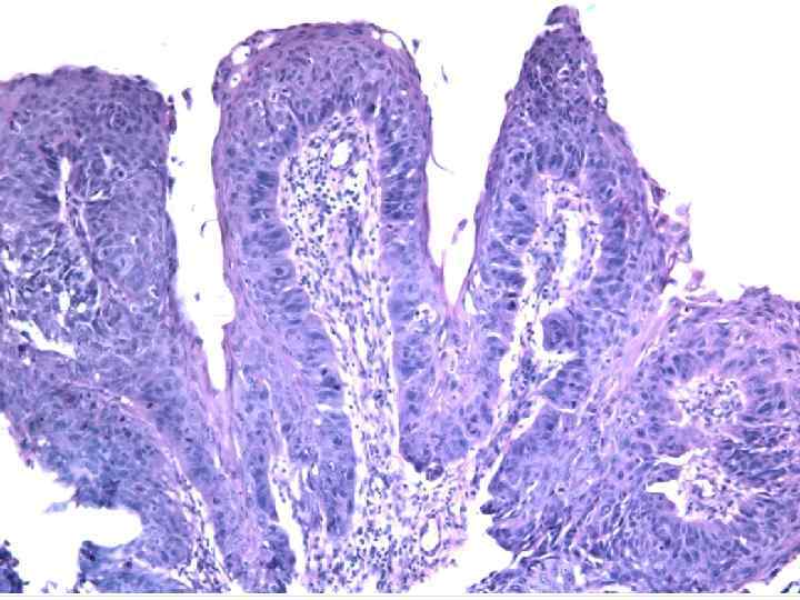 Tumors from the squamous and transitional epithelium o o Benign - papilloma Malignant – squamous cell keratinous and nonkeratinous carcinoma or transitional carcinoma.