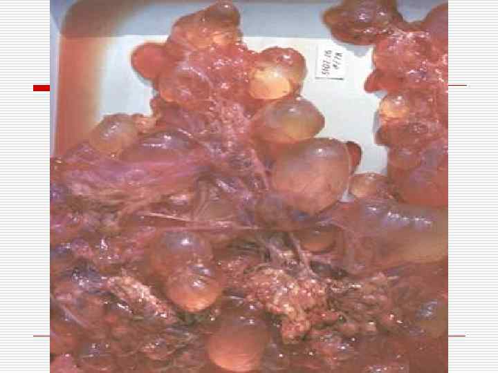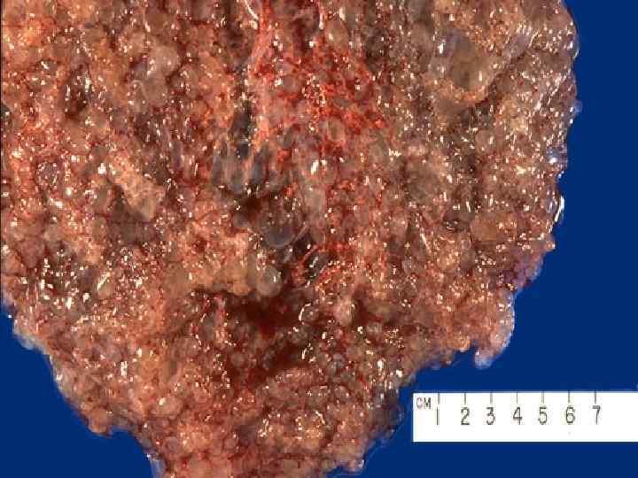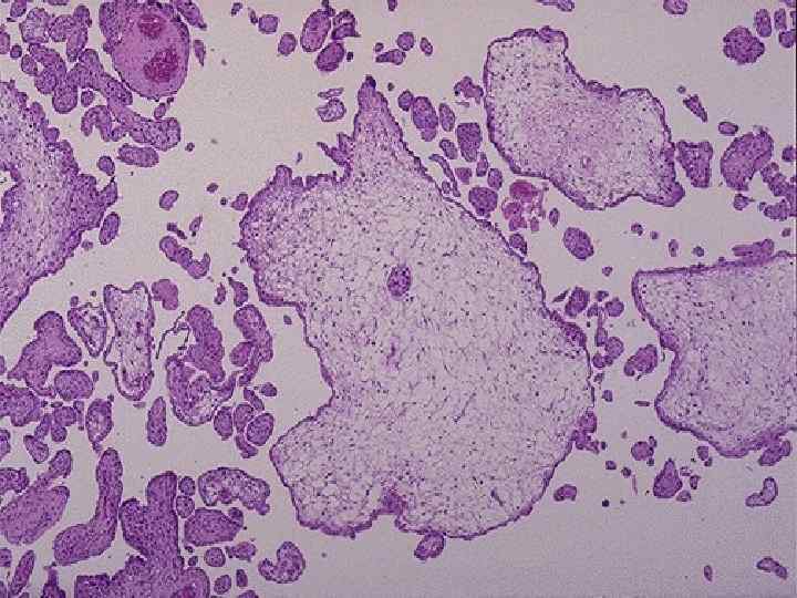Uterus (chorionic membrane): o o Benign – cystic (hydatidiform, vesicular) mole Malignant – chorioepithelioma (choriocarcinoma) choriocarcinoma