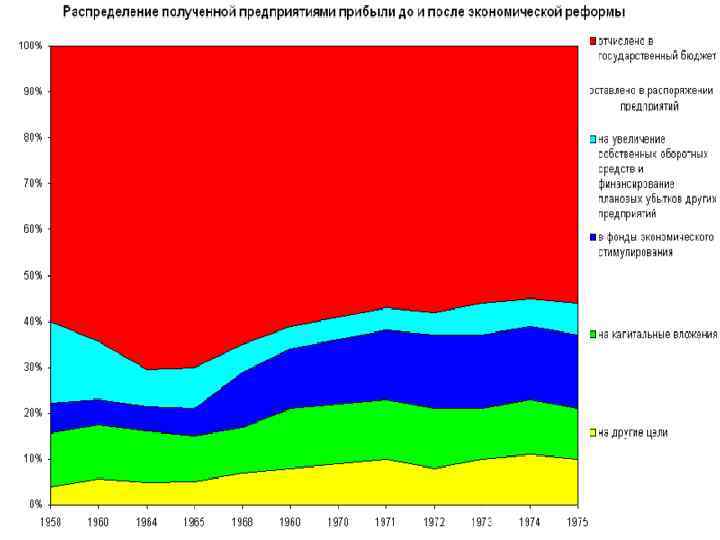 Результат на время был успешным, но из-за экстенсивного развития экономики, централизованного планирования, не учитывались особенности, возможности, экономика развивалась вширь, что требовало новых расходов, повышало стоимость продукции, привело к нехватке людских ресурсов. «Вот наша прибыль» Агитационный плакат, посвящённый реформе
