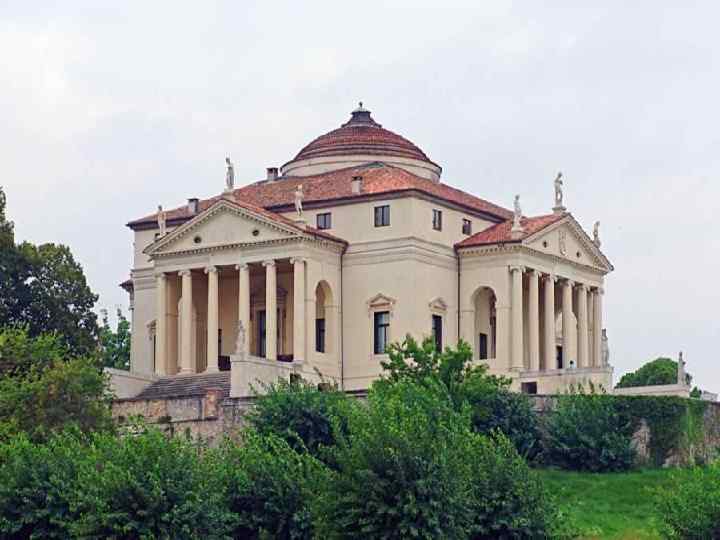 Андреа Палладио (1508 – 1580) • Крупнейший архитектор Позднего Возрождения. Палладио заложил принципы зодчества, которые были развиты в эпоху классицизма в XVII – XVIII веках. • Ему принадлежит труд «Четыре книги об архитектуре» . • Постройки Палладио полны естественности, покоя, завершенности, планировка зданий ясна и целесообразна, тесно связана с окружающей средой.