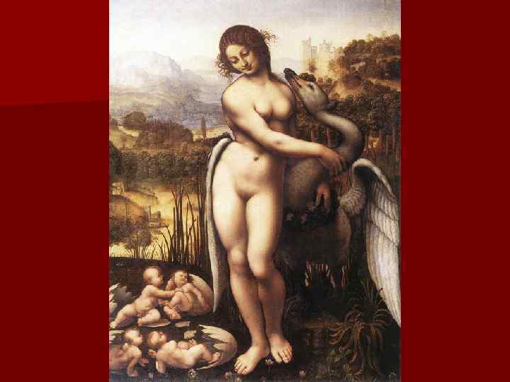 Леда и лебедь. n Картина художника Леонардо да Винчи «Леда и лебедь» до нашего времени не сохранилась, и о ней можно судить лишь по копиям, сделанным в начале 16 века. Размер этой копии картины 112 x 86 см, дерево, масло. Существует четыре копии картины, официально рассматриваемых историками и исследователями живописи Леонардо да Винчи в качестве вариантов копий его творческого наследия. Кроме рассматриваемой копии галереи Боргезе, другие работы хранятся — картина «Леда» в галерее Уффици, Флоренция, картина «Леда и лебедь» в Уилтон Хаус, Солсбери и копия картины «Леда» в государственном музее в Касселе. Картина была написана художником Леонардо да Винчи между 1510 и 1515 годами, предположительно во время работы великого мастера в Милане.