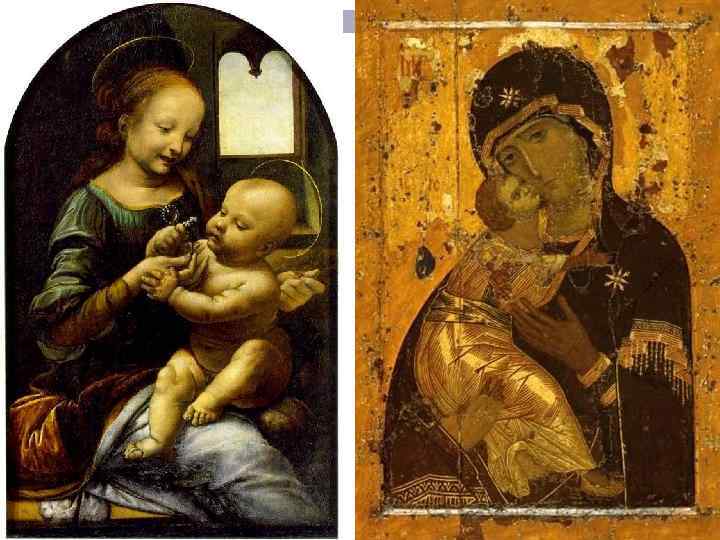 Изобразительное искусство n В творчестве Леонардо да Винчи, Рафаэля, Тициана итальянская живопись достигла своего наивысшего рассвета. Созданные ими образы воплощали человеческое достоинство, силу, мудрость, красоту. Рафаэль. Мадонна с младенцем.