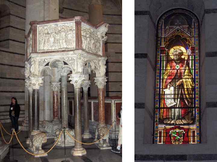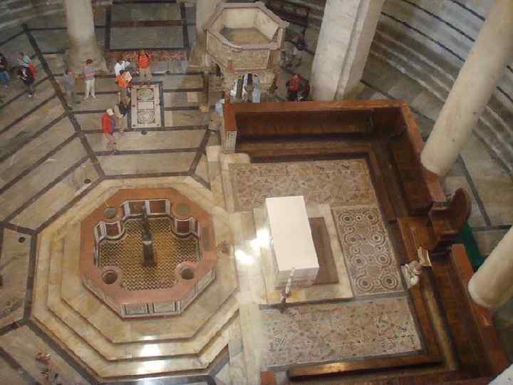 Баптистерий Сан-Джованни (Флоренция) Шестигранная мраморная кафедра (1260 г. ), выполненная им для баптистерия в Пизе, стала выдающимся достижением ренессансной скульптуры и повлияла на ее дальнейшее формирование. Кафедра из белого, розово-красного и темно-зеленого мрамора представляет собой целое архитектурное сооружение, легко обозримое со всех сторон.