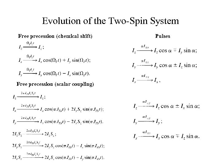 Evolution of the Two-Spin System Free precession (chemical shift) Free precession (scalar coupling) Pulses
