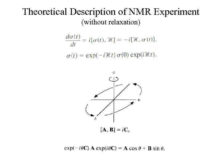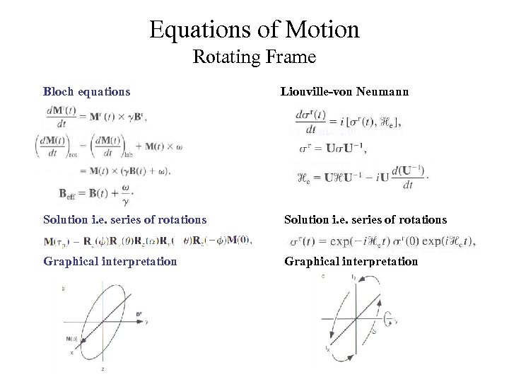 Equations of Motion Rotating Frame Bloch equations Liouville-von Neumann Solution i. e. series of rotations Graphical interpretation
