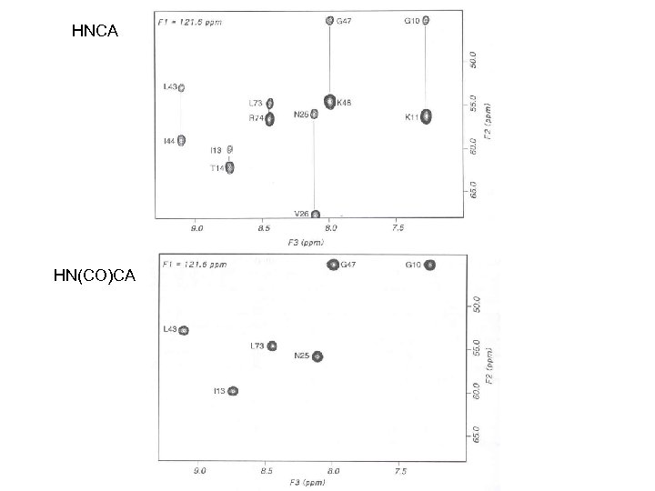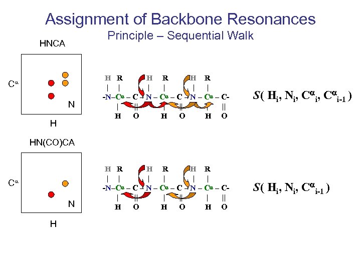 Assignment of Backbone Resonances Principle – Sequential Walk HNCA Ca N H H R H R | | | -N–Ca – C – N – Ca – C| || | || H O H O S( Hi, Ni, Cai-1 ) HN(CO)CA Ca N H