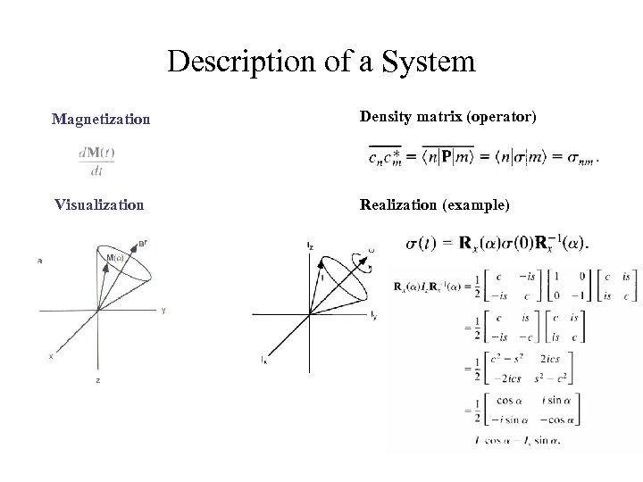 Description of a System Magnetization Density matrix (operator) Visualization Realization (example)