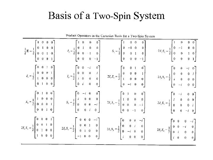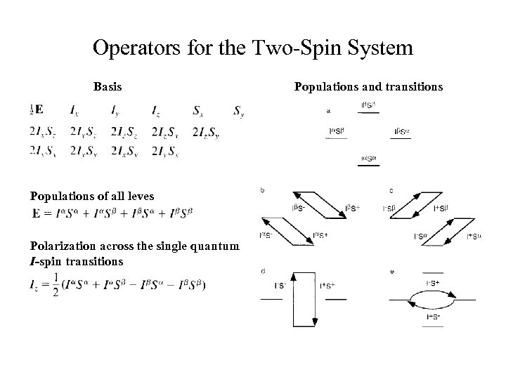 Operators for the Two-Spin System Basis Populations of all leves Polarization across the single quantum I-spin transitions Populations and transitions