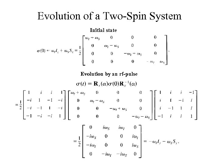 Evolution of a Two-Spin System Initial state Evolution by an rf-pulse