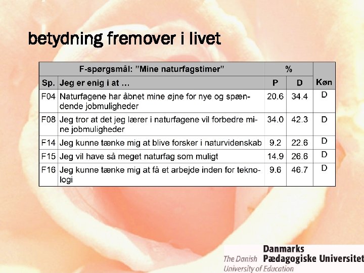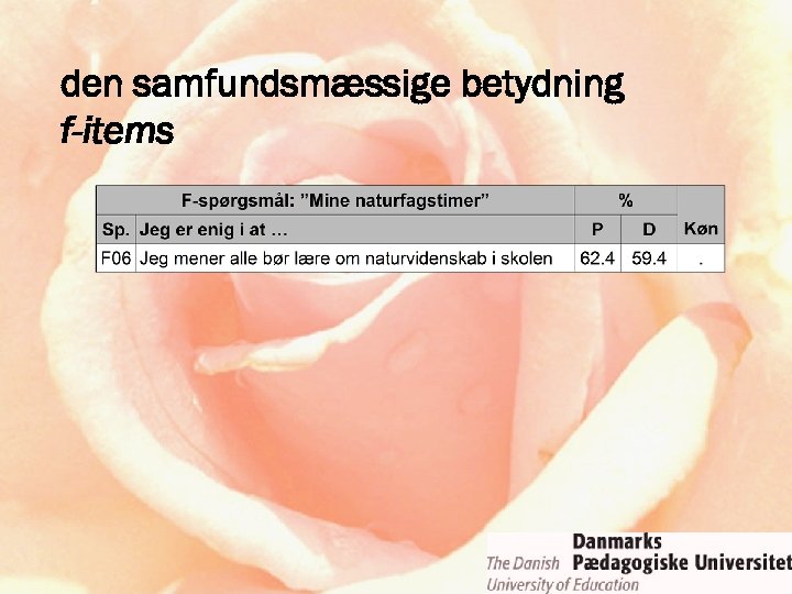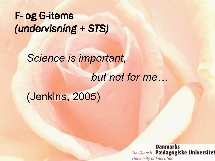 F- og G-items (undervisning + STS) Science is important, but not for me… (Jenkins, 2005)