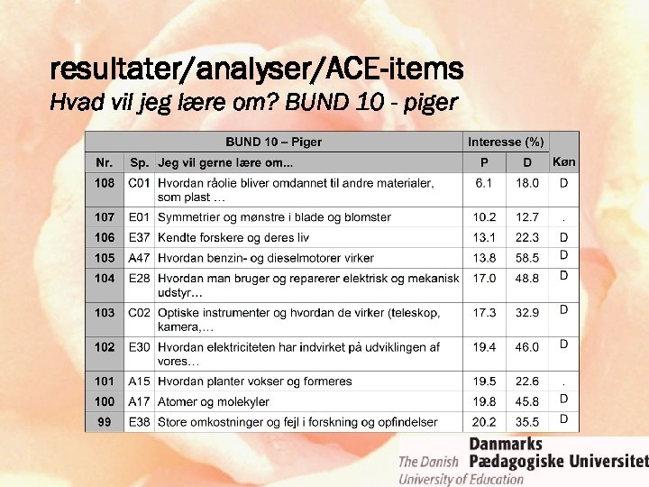 resultater/analyser/ACE-items Hvad vil jeg lære om? BUND 10 - piger