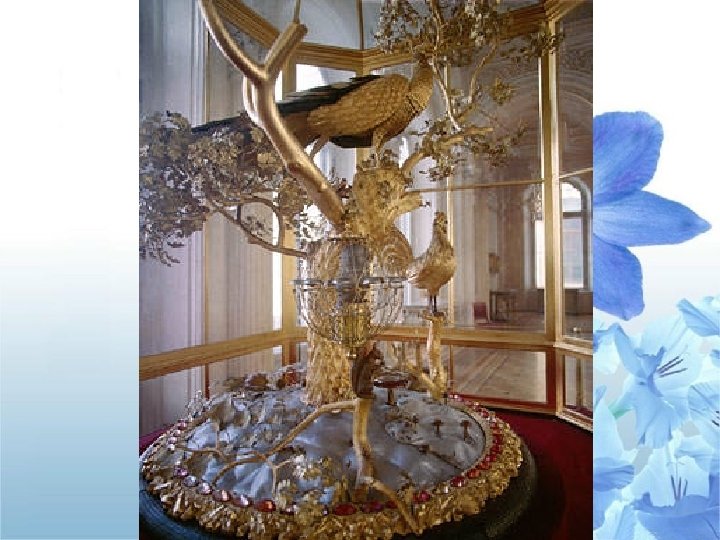 ГЕРБОВЫЙ ЗАЛ По обе стороны от входов располагались скульптурные группы – русские витязи с копьями, на которых были укреплены щитки с гербами российских губерний. (Сейчас они укреплены по краям золоченых бронзовых люстр, украшающих зал. ) Гербы и дали название залу, который олицетворял собой единение империи и императора: здесь проходили приемы государем представителей городов, губернского дворянства, сословий. В наши дни Гербовый зал, как и многие другие залы Зимнего дворца, является выставочным помещением. В Гербовом зале экспонируется богатейшая коллекция западноевропейского серебра XVII-XVIII веков.