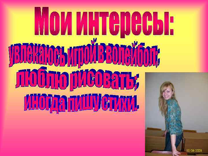 Мои заслуги и участие в конкурсах и праздниках университета за второй курс • Педагогическая олимпиада 2010 г. На тему: «Профессиональные успехи молодых учителейвыпускников ТГПУ им. Л. Н. Толстого. Их вклад в развитие региональной системы образования» • Масленица • «Весенняя капель» • Викторина «Русский музей. Культура и искусство» • Спортивные соревнования по волейболу (II место) • Прохождение учебно – исследователькой практики в гимназии № 4