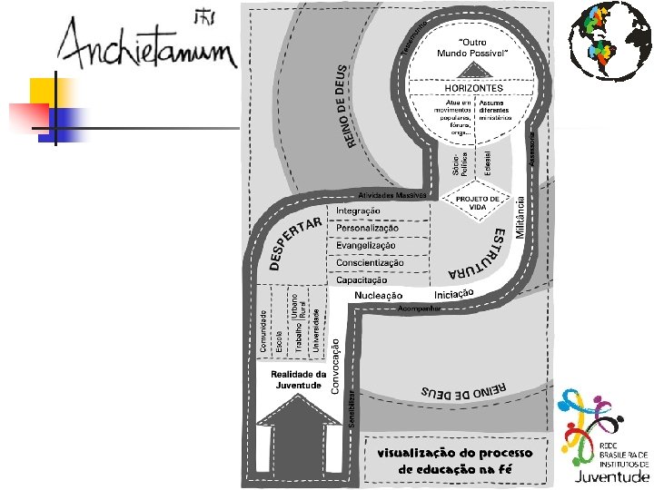 Plano de Evangelização CNBB n n n 2007 - Tempo da dimensão psico-afetiva – processo da personalização 2008 - Tempo da dimensão psicosocial – processo de integração 2009 - Tempo da dimensão mística – processo teológico-espiritual 2010 - Tempo da dimensão política - processo de participação – conscientização 2011 - Tempo da dimensão técnica – processo de capacitação-metodologia