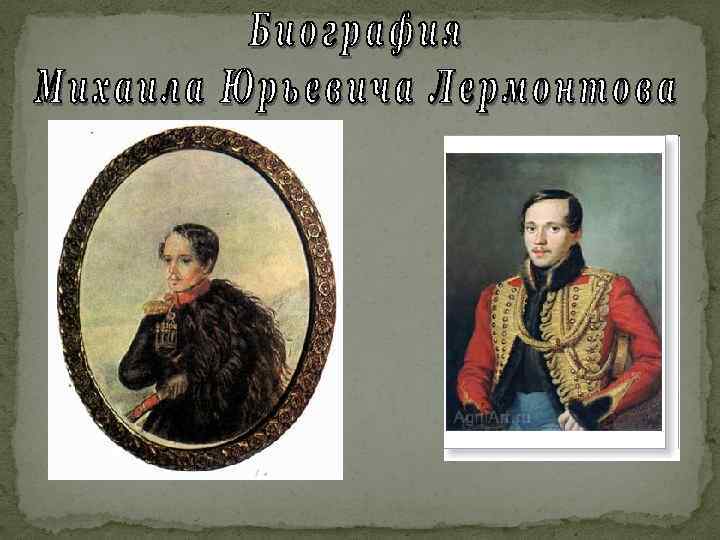 По мужской линии род Лермонтовых (отец поэта — Юрий Петрович Лермонтов, капитан в отставке из небогатых помещиков Тульской губ. ) ведет свое начало от Георга Лермонта (Шотландия). Находясь на службе у польского короля, в 1613 г. Лермонт перешел на сторону русских, сражался в чине офицера в отряде Дмитрия Пожарского и в 1621 г. за хорошую службу царю получил грамоту на владение землей в Галическом уезде Костромской губернии. От него и пошли Лермонтовы, уже во втором колене принявшие Православие.