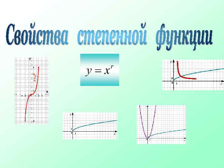Если r – положительное нечетное число D(y) = Е(у) = Нечетная Возрастает на у > 0 при х >0 y < 0 при x<0 у = 0 при х = 0